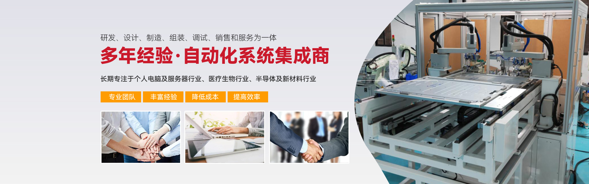 ※ 長(zhǎng)期專注亍個(gè)人電腦及服務(wù)器行業(yè)、醫(yī)療生物行業(yè)、半導(dǎo)體及新材料行業(yè)三大行業(yè)的自動(dòng)化組裝、檢測(cè)設(shè)備的生產(chǎn)與開發(fā)。